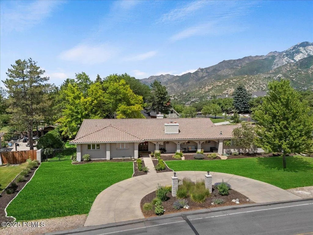 NEW IMPROVED PRICE! This beautifully crafted all-brick rambler blends timeless design with the ease of single-level living. Situated on a .57-acre lot with a circular driveway, this home offers extra-large rooms. Light-filled and spacious, the open living and dining areas flow seamlessly into a dazzling island kitchen. The inviting primary suite is filled with warmth and natural light, featuring an updated spa-style bath. Step outside to a backyard built for entertaining-enjoy mountain views, mature trees, charming gazebo and a 50' Solara covered patio with motorized ventilation panels, ceiling fans, and ambient lighting. Tile roof, updated baths, lighting , and a new A/C system. Located in vibrant Pepperwood community offering 24 security, clubhouse, pool, playground, tennis and pickleball courts---all just minutes from Little Cottonwood Canyon, scenic hiking and biking trails, and world-class ski resorts.