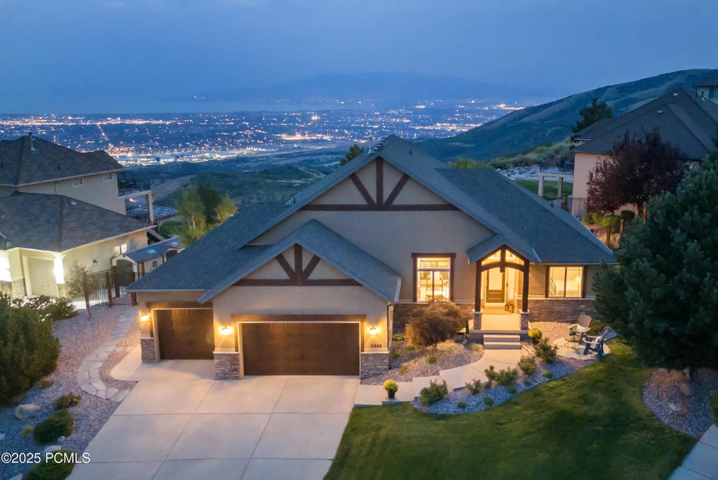Welcome to mountain living at its best. Sitting on a premier corner lot at the very top of SunCrest, this ranch-style home has some of the most stunning views you'll find, from the Wasatch Mountain range and Mount Timpanogos to the valley and lake below. Inside, natural light and an open floor plan create a warm, relaxed vibe. The main level features a welcoming sitting area, ideal for cocktails with friends, listening to music, or simply soaking in the views. The designer primary suite offers a spa-style bath and French doors leading to a covered deck, the perfect spot to relax and watch sunsets over the valley. An updated kitchen with Wolf range, stainless appliances, custom cabinetry, and a generous island flows into the dining area, while the family room with a stone fireplace connects seamlessly to the deck for effortless indoor-outdoor living. Two additional bedrooms, a full bath, and an updated laundry and mudroom complete the main floor. The lower level is built for entertaining, with a spacious family room and stone fireplace, game and billiards area, three more bedrooms, a full bath, and walk-out access to a covered patio with hot tub. Outside, enjoy the fully landscaped, terraced backyard, vegetable garden, and front patio. The home has exceptional storage and a spacious 3-car gargage. Residents love the SunCrest lifestyle where you get the best of both worlds, peaceful mountain surroundings and a strong sense of community. Enjoy more than 40 miles of hiking and biking trails, plus equestrian facilities nearby. The HOA amenities include high-speed internet, a clubhouse with fitness center, pool and hot tubs, tennis and pickleball, basketball, and multiple parks. And while it feels like a true mountain retreat, you're still only about 30 minutes from Salt Lake International Airport, the Tech Corridor, and Salt Lake City.