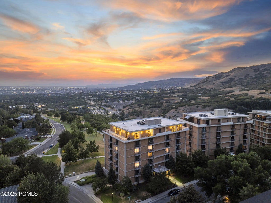 Perched above the city with sweeping views of Donner Park, the WasatchMountains, and the Salt Lake skyline, this extraordinary penthouse offers a rare blend of timeless design, elevated comfort, and cosmopolitan ease. From the marble-inlaid foyer to the floor-to-ceiling windows, every inch of this residence has been thoughtfully crafted. The living and dining spaces are wrapped in glass, immersing you in Utah's natural beauty from sunrise to sunset. Crisp architectural lines, warm wood finishes, and elegant lighting fixtures set a refined yet inviting tone. At the heart of the home, a meticulously designed kitchen pairs sculptural beauty with exceptional performance. Custom cabinetrye, rift-cut white oak island is topped with leathered Taj Mahal quartzite. Premium Wolf and Sub-Zero appliances are seamlessly integrated, ensuring that the space serves the needs of casual cooks and avid entertainers alike. Gold-tone hardware and a hand-forged refrigerator handle add artisan detail, while a luminous marble backsplash evokes a constellation of stars. Private spaces unfold with equal care. A cozy den is tucked behind 18th-century carved Balinese doors, adding character and global craftsmanship to the home's modern narrative. It's the kind of space that invites both solitude and togetherness-generous in form, comforting in feel. Whether it becomes a reading room, music space, or intimate gathering spot, the den offers a rare blend of presence and ease. The primary suite is a true sanctuary, anchored by nearly uninterrupted glass that frames the mountains, Great Salt Lake, and city lights. A fireside seating area invites quiet mornings, while the spa-style bath balances rich marble finishes. His and hers walk-in closets featuring custom cherry interiors.This is more than a home, it's a mountain-framed retreat where every hour brings something beautiful into view.